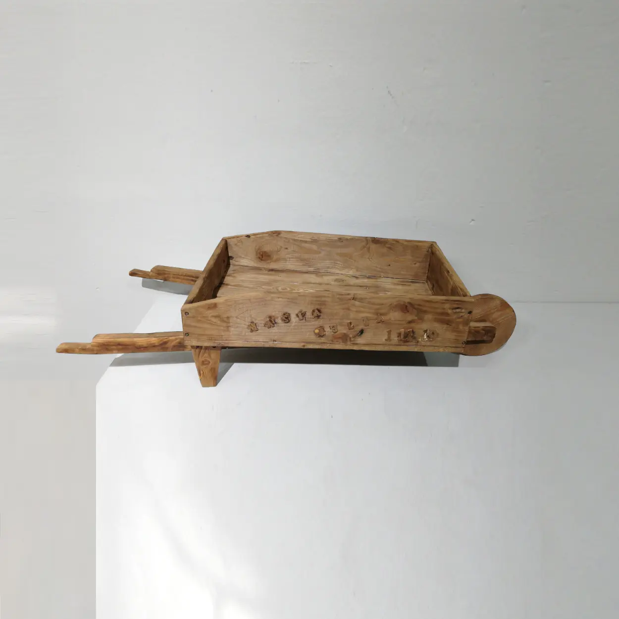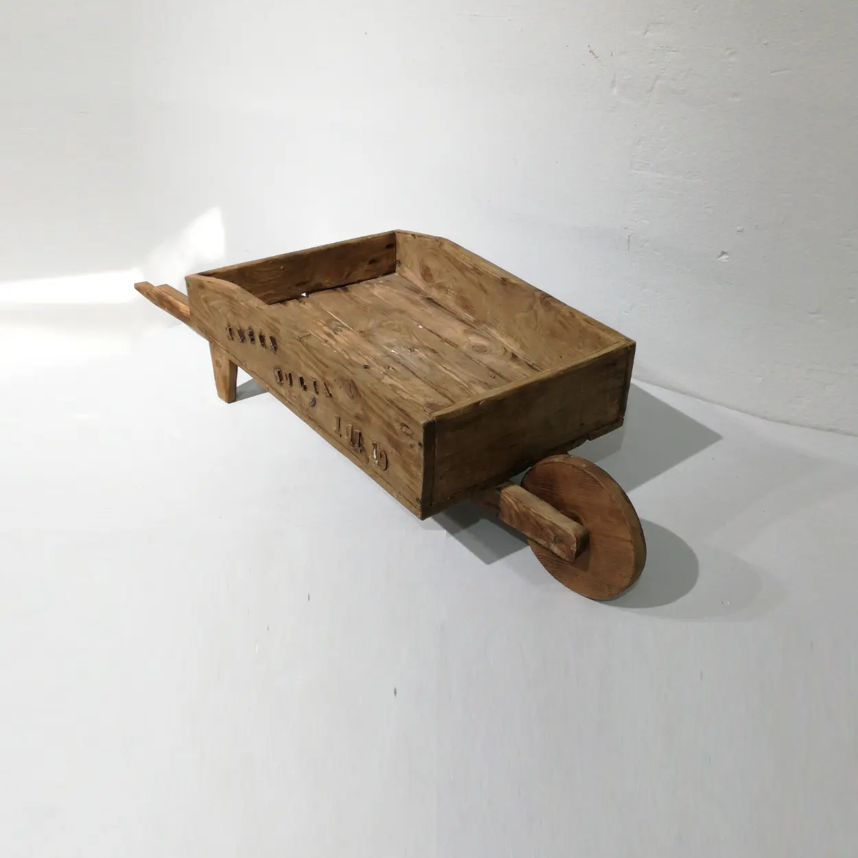 Carretilla decorativa fabricada con madera perfecta para uso domรฉstico.