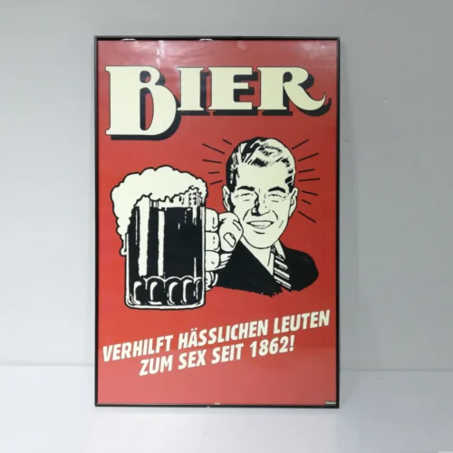 Cartel alemรกn de cerveza de los aรฑos sesenta.
