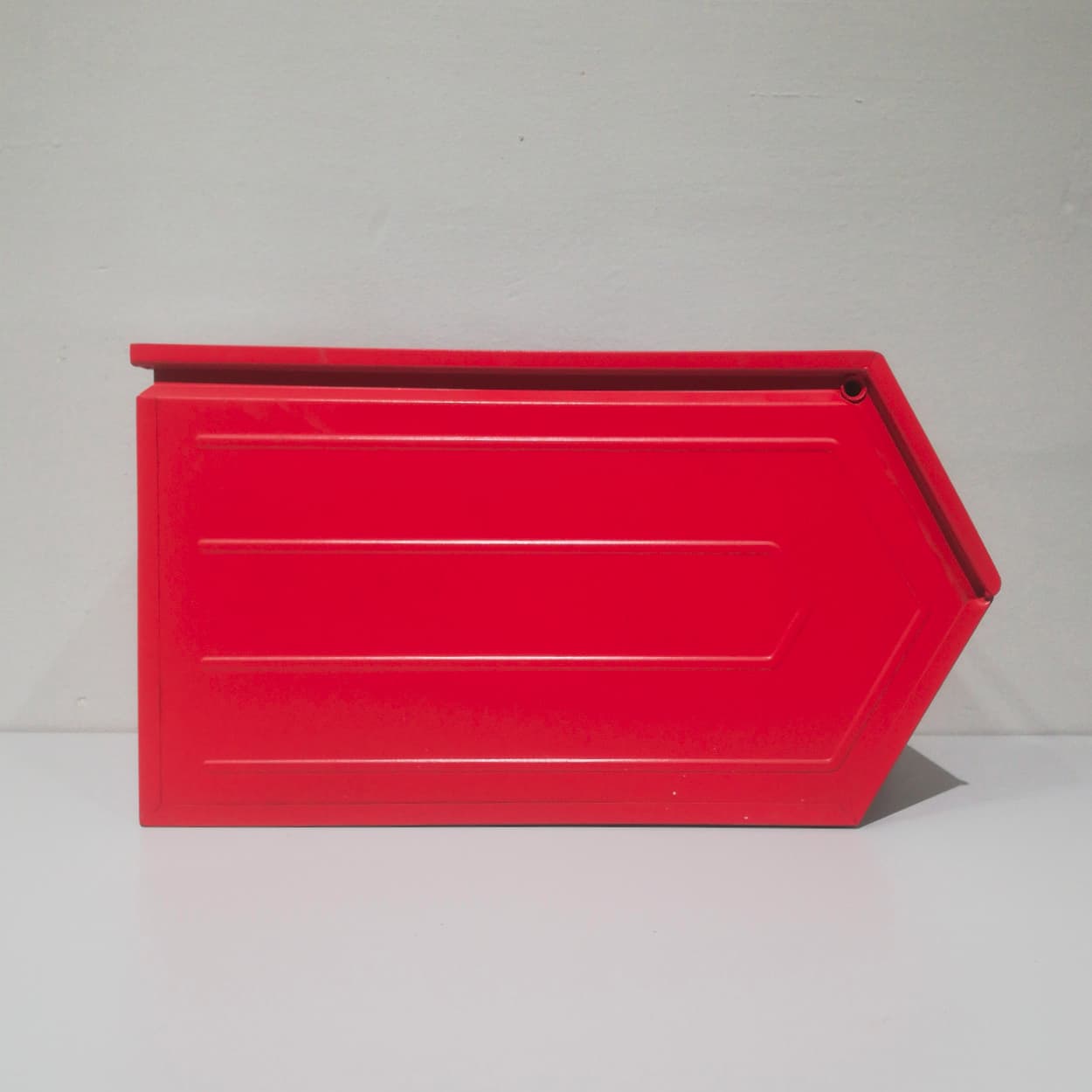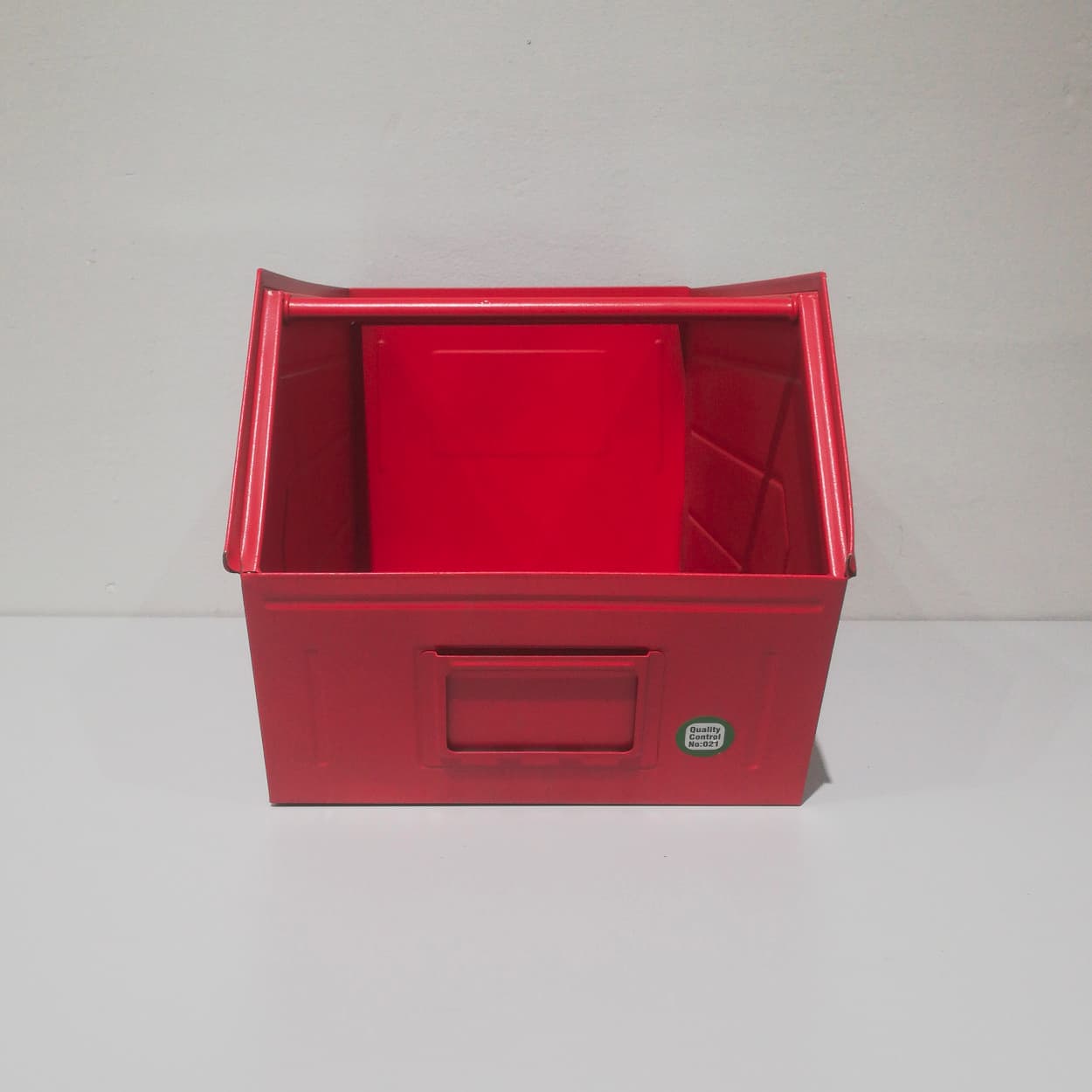 Gaveta de organización fabricada con chapa de acero de gran calidad y resistencia, apilable y con barra delantera de refuerzo pintada de color rojo.
