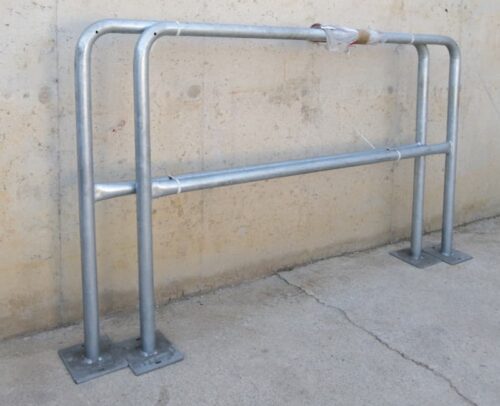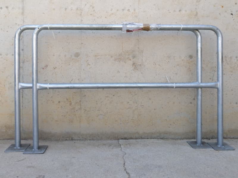 Arco de seguridad de acero galvanizado con bases de 15x15cm para atornillarlo al suelo.