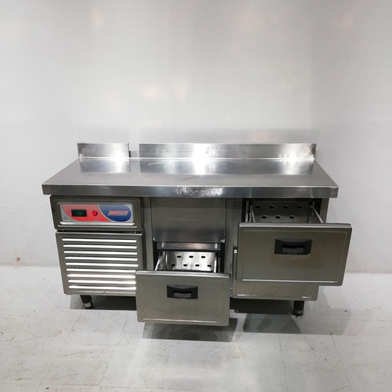 Bajomostrador fabricado con acero inoxidable con cajones de ocasiรณn en venta por no usar perfecto para restaurante, caterin, cocina comunitaria…