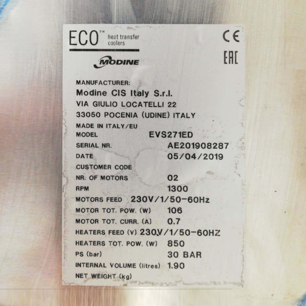 Evaporador de 86x15x44cm.