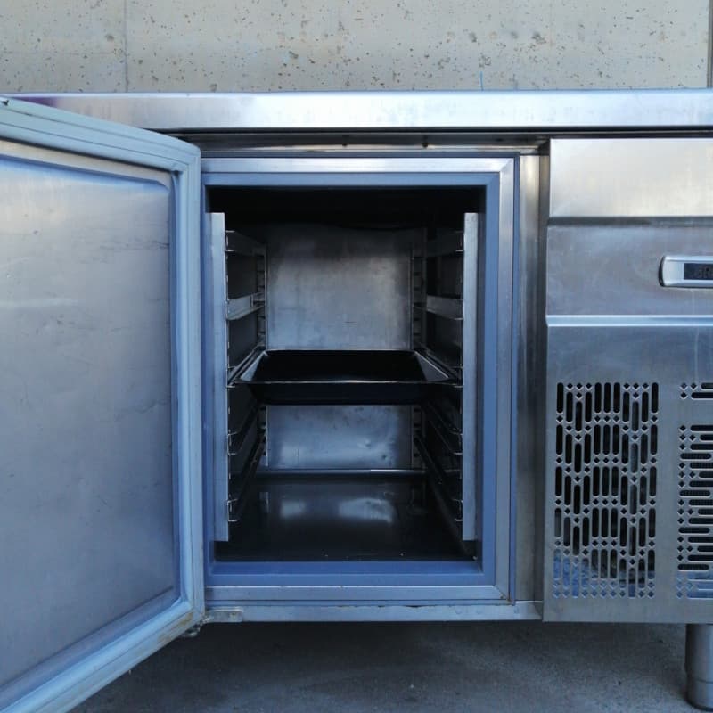 Bajomostrador refrigerado con pasaplatos procedente de una empresa en cierre.