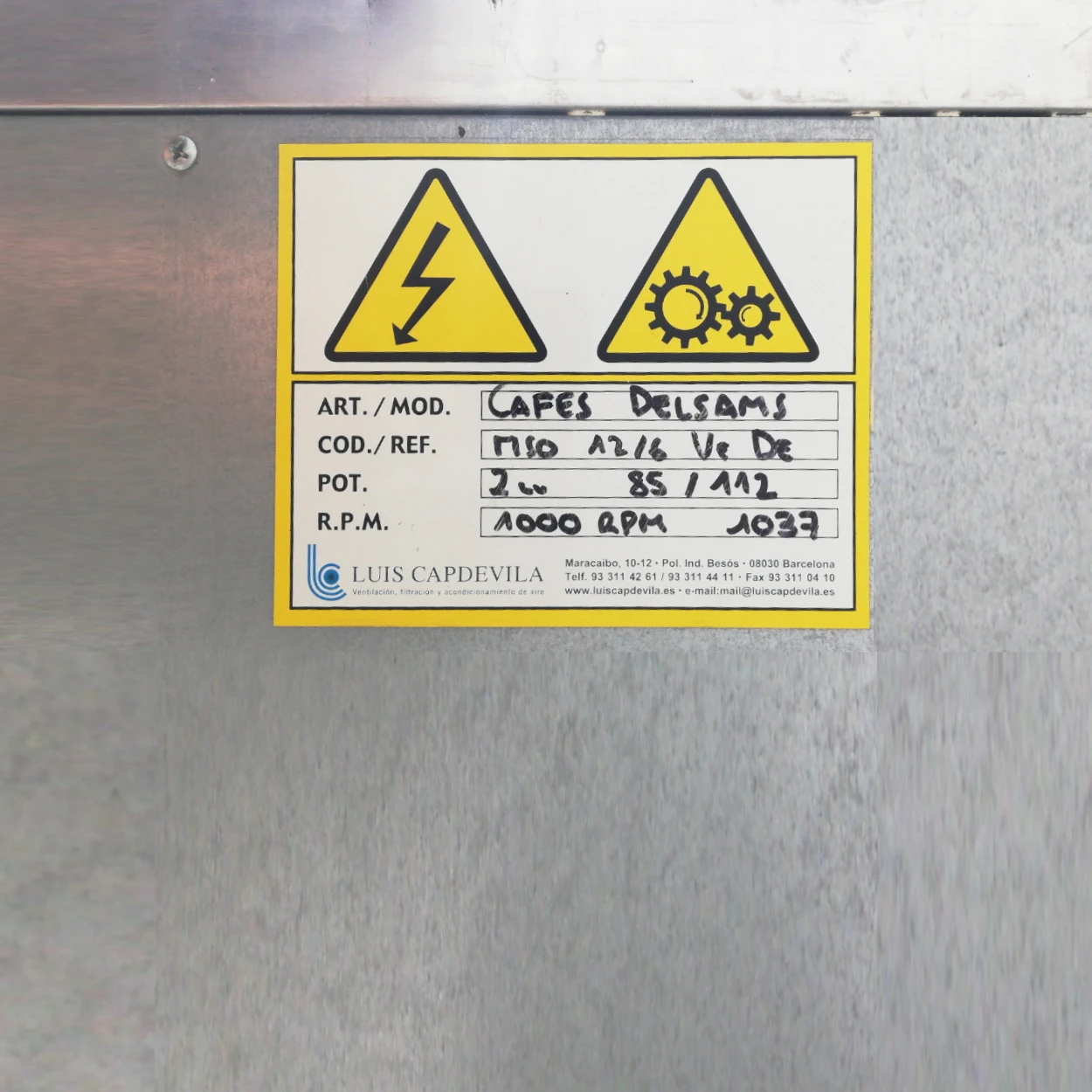 Extractor con motor con 2cv y 1.000 rpm.
