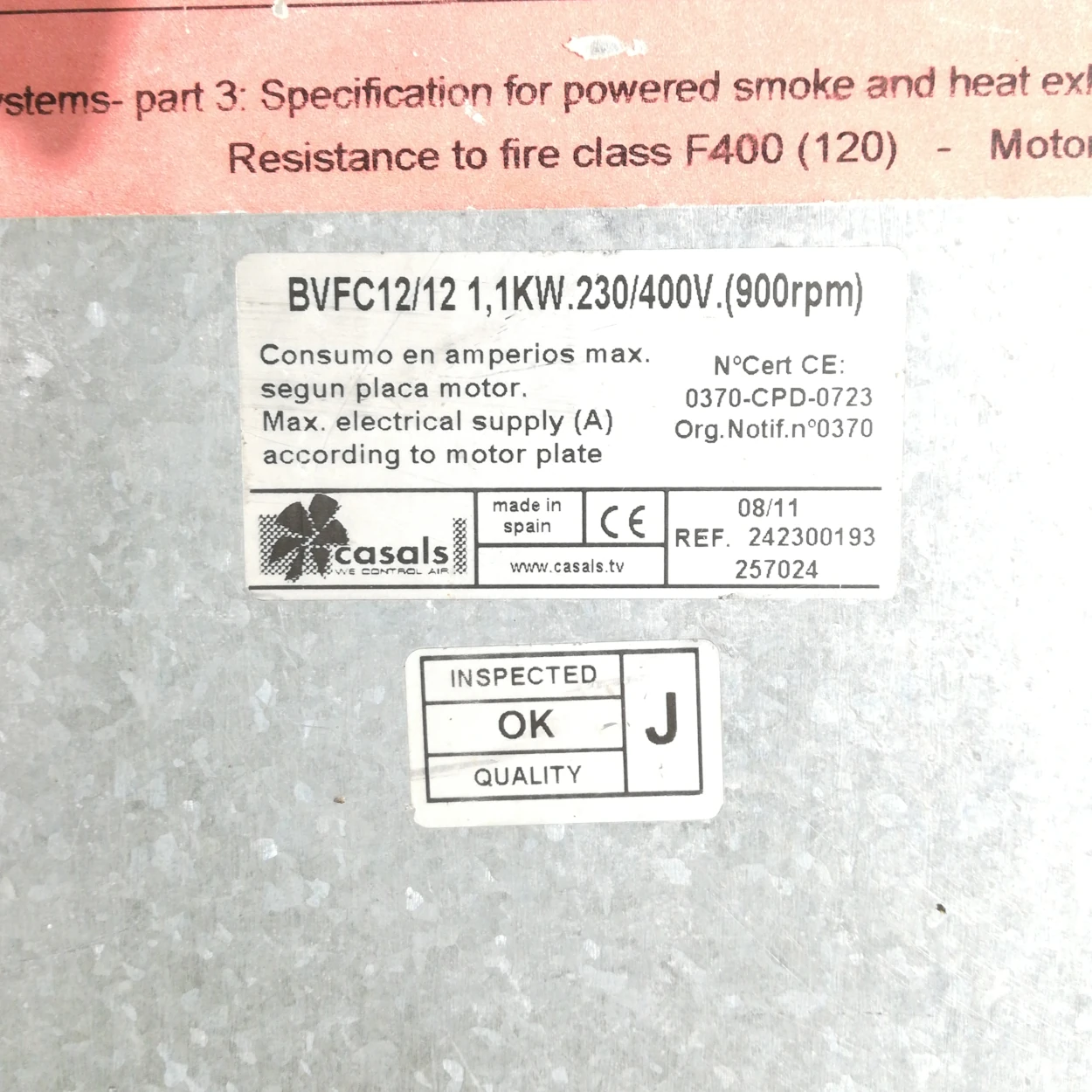 Extractor con motor de 1,1kW, 230/400V, (900rpm).