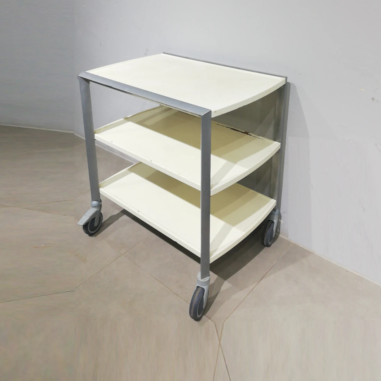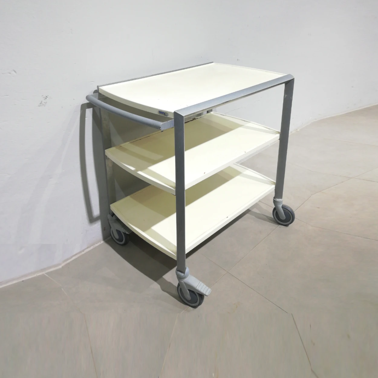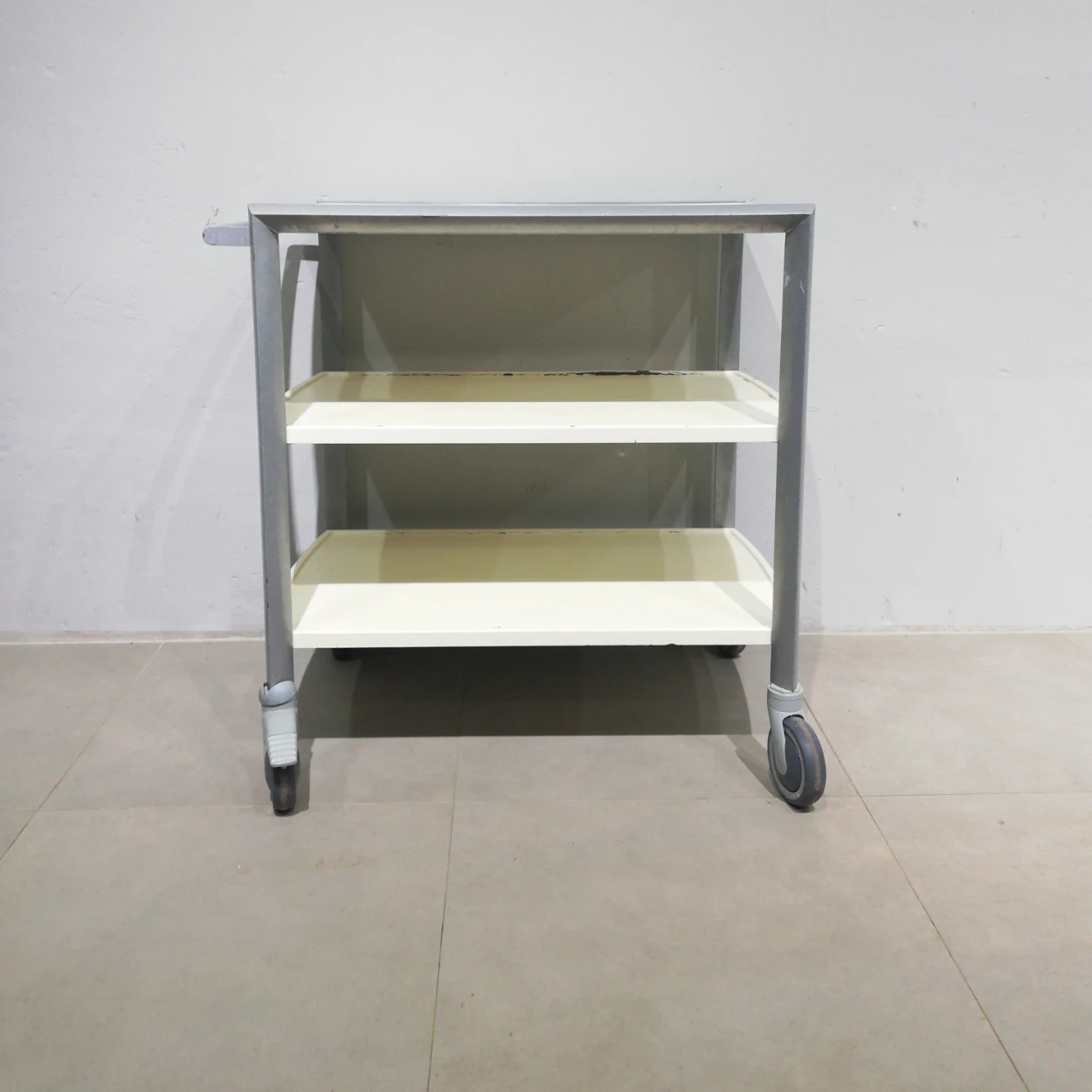 Carro auxiliar de ocasiรณn con estructura metรกlica y estantes de plรกstico perfecto para restaurante, catering, cocina comunitaria, tallerโฆ