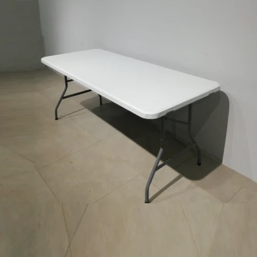 Mesa de ocasión con tablero de plástico y patas de tubo de acero de gran calidad y resistencia, 100% funcional.