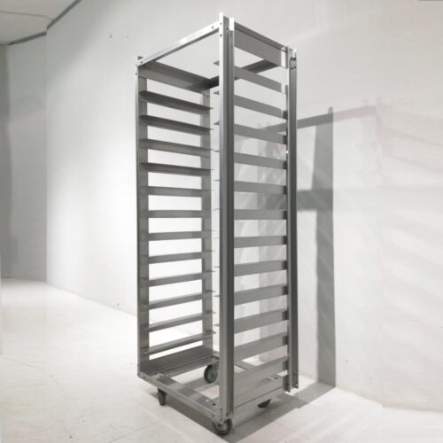 Carro de ocasiรณn fabricado con chapa de acero de gran calidad y resistencia, con capacidad para 12 bandejas de 64x53cm.