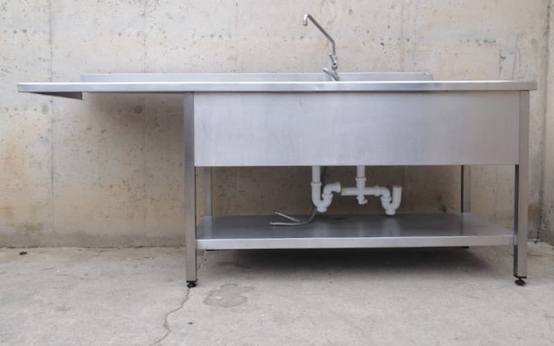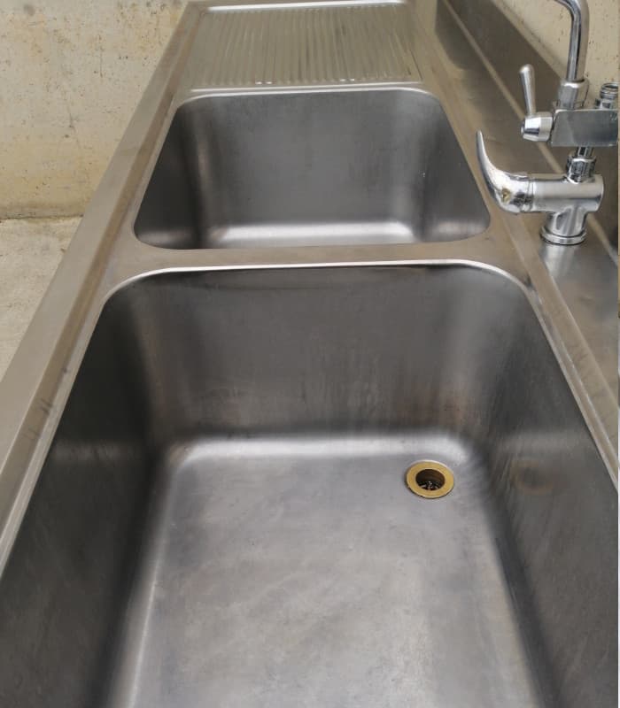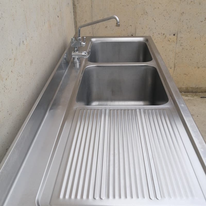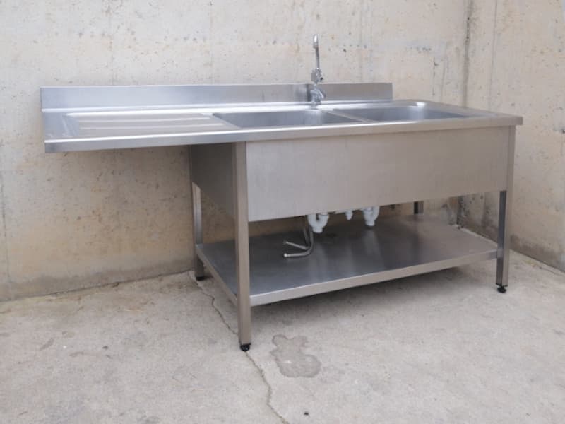 Fregadero de acero inoxidable de hostelerรญa procedente de una empresa en cierre.