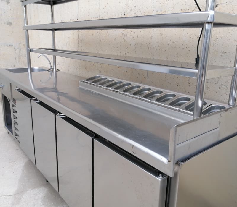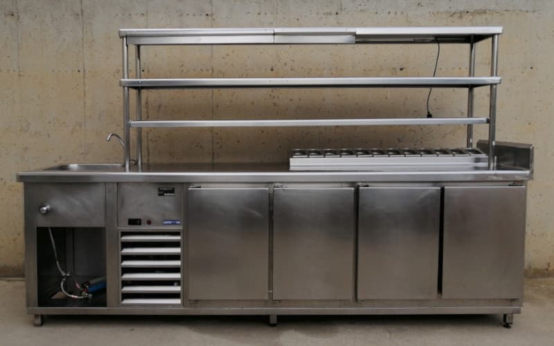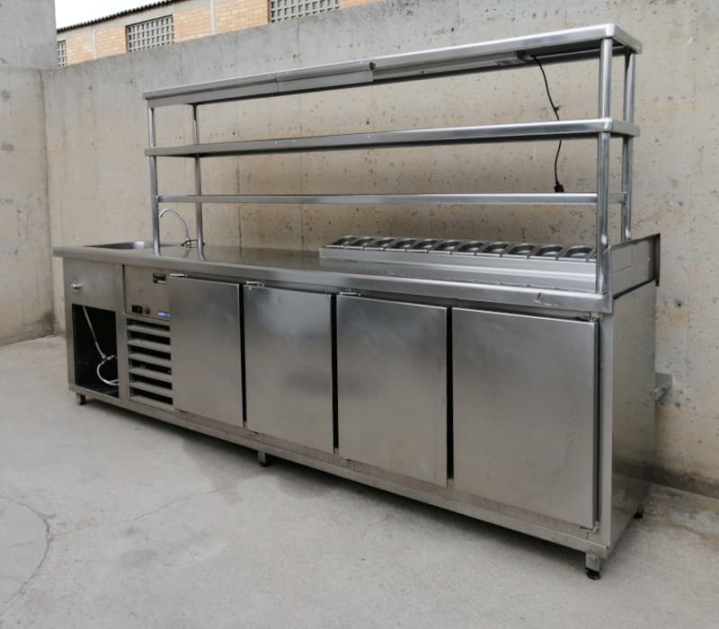 - Estanterรญa pasaplatos de 234x38cm con calientaplatos.