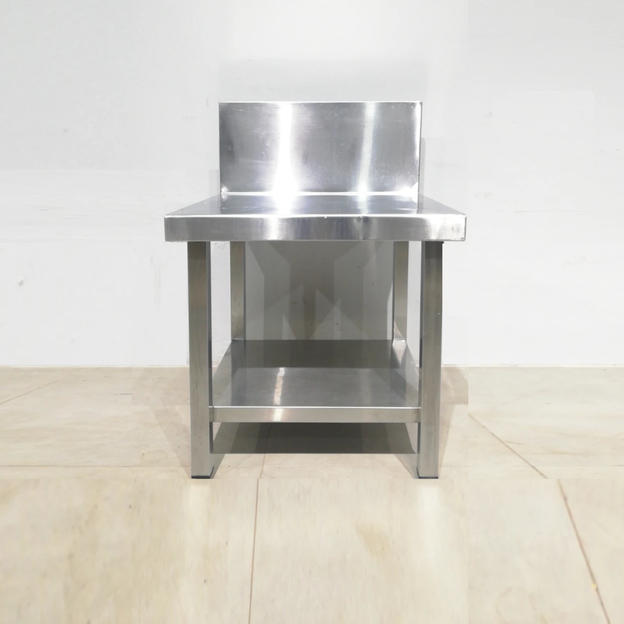 Mesa baja de acero inoxidable de ocasiรณn, procedente de una empresa en cierre perfecta para tienda, taller, bar…
