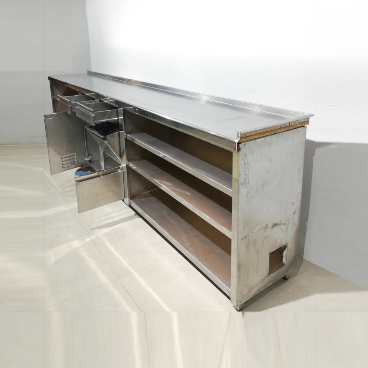 Mueble para cafetera de ocasiรณn, fabricado acero inoxidable de alta calidad y resistencia y amplio espacio de almacenamiento.