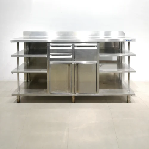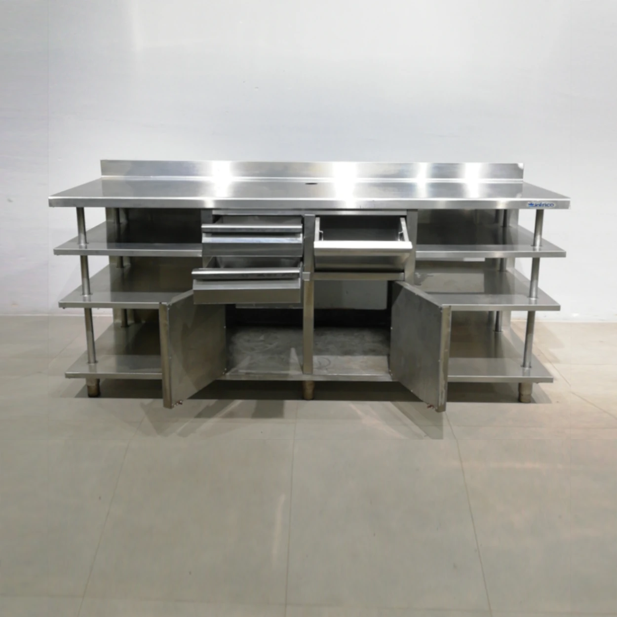 Mueble para cafetera de ocasión, fabricado con chapa de acero inoxidable de alta calidad y resistencia y amplio espacio de almacenamiento.