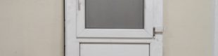 Puerta de PVC de segunda mano con ventana en buenas condiciones.