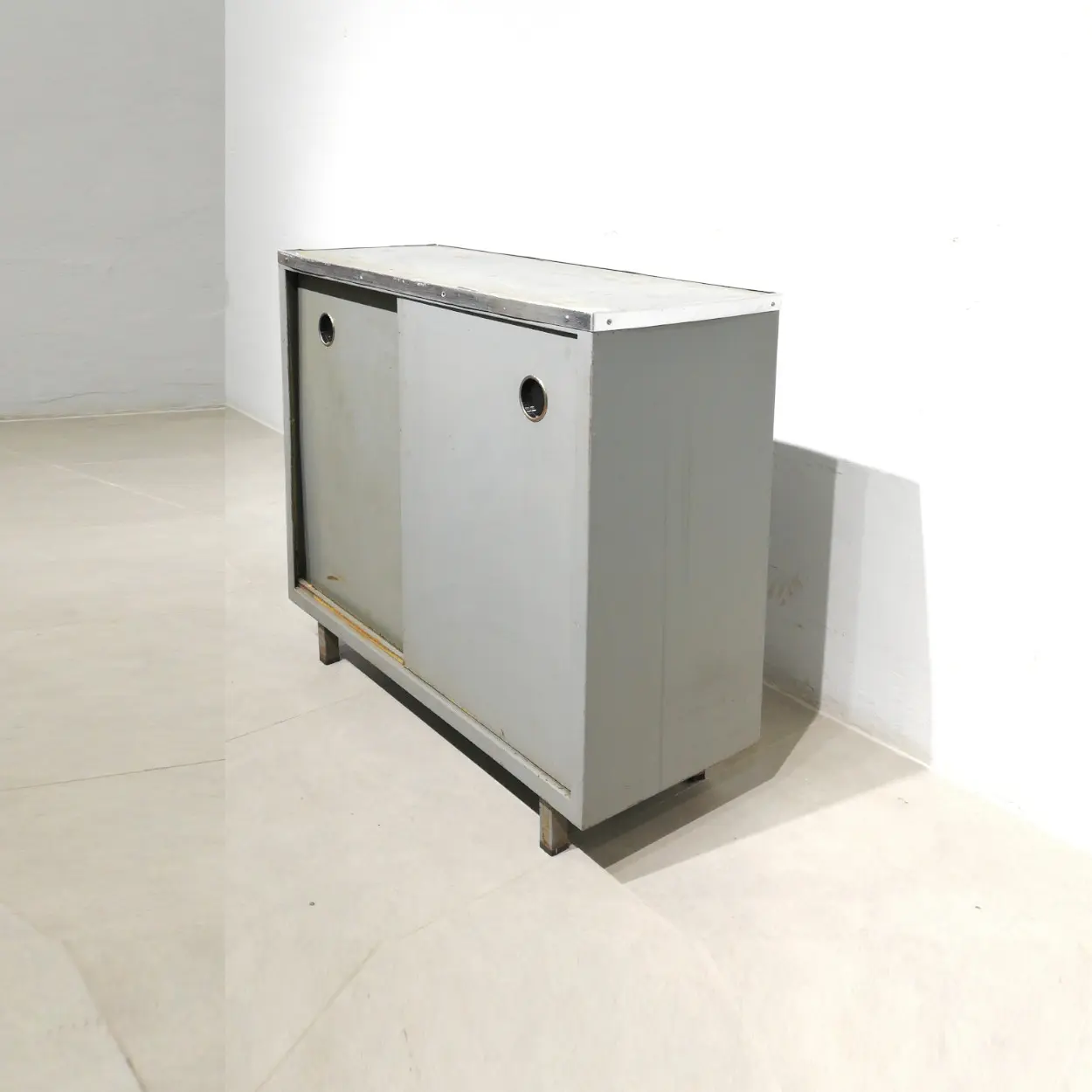 Armario fabricado con chapa de acero con puertas correderas y estantería inferior procedente de un final de stock, armario de gran resistencia, perfecto para taller, granja, fábrica…