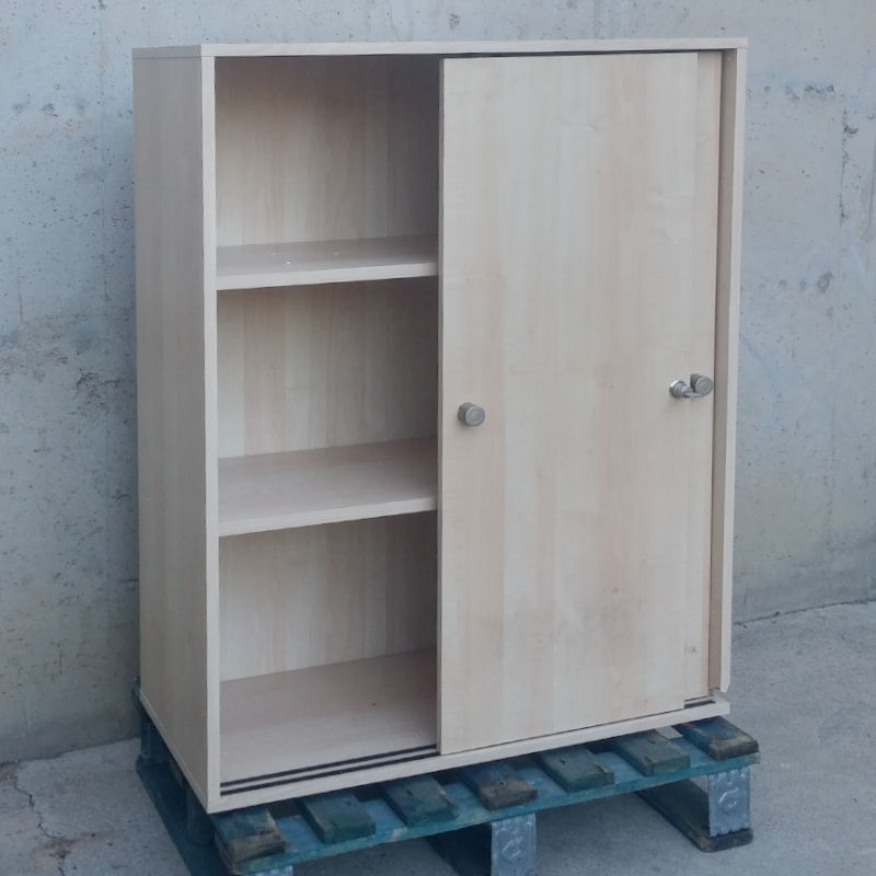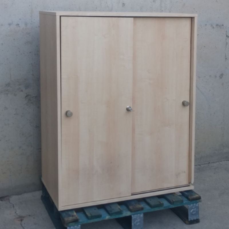 Armario de ocasión con un golpe en un rincón fabricado en melamina color haya.