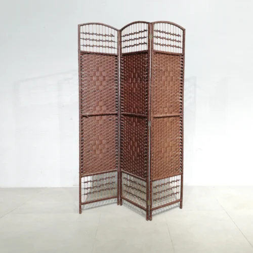 Biombo de ocasiรณn de 3 paneles hecho de puntales de bambรบ, en venta por no usar.