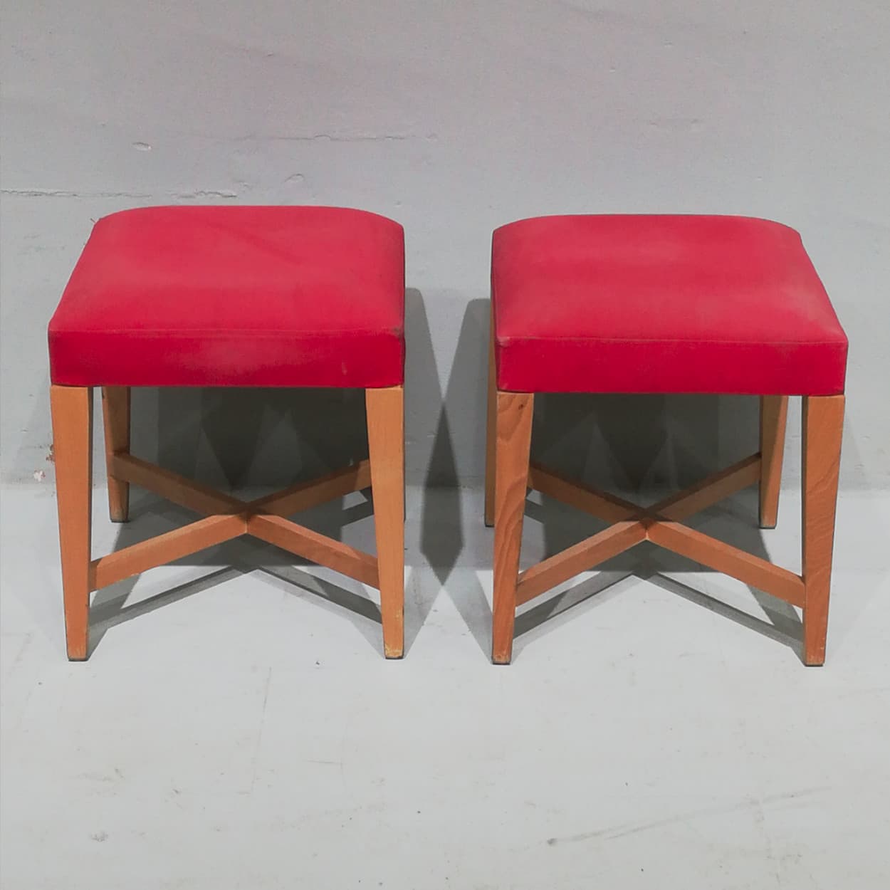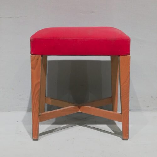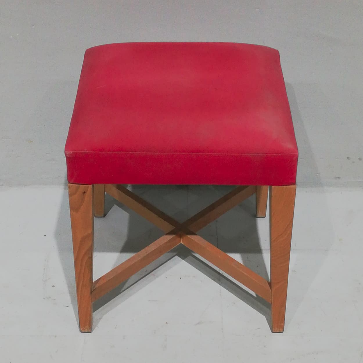 Reposapiés de ocasión perfecto para uso doméstico con patas de madera y acolchado rojo.