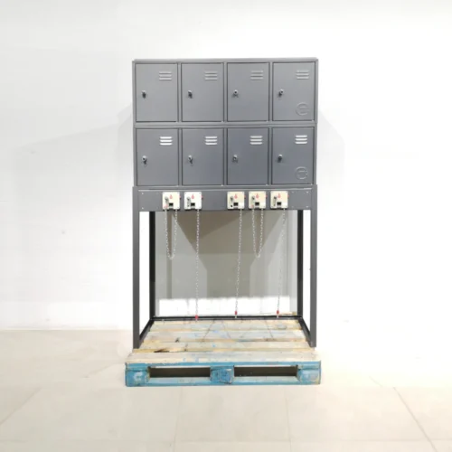 Módulo de 8 taquillas y amarre para 5 carritos de segunda mano.