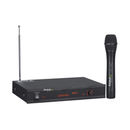 Sistema inalámbrico VHF formado por un micrófono emisor y un receptor nuevo.