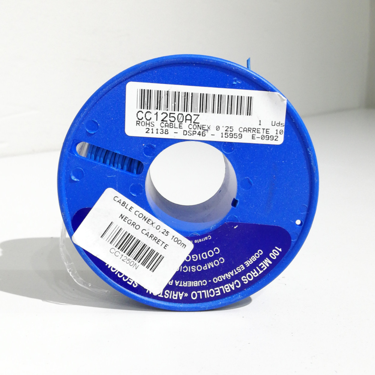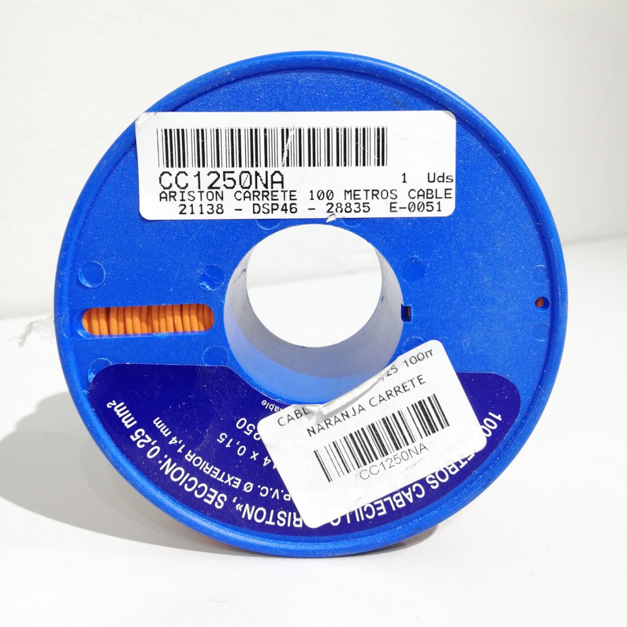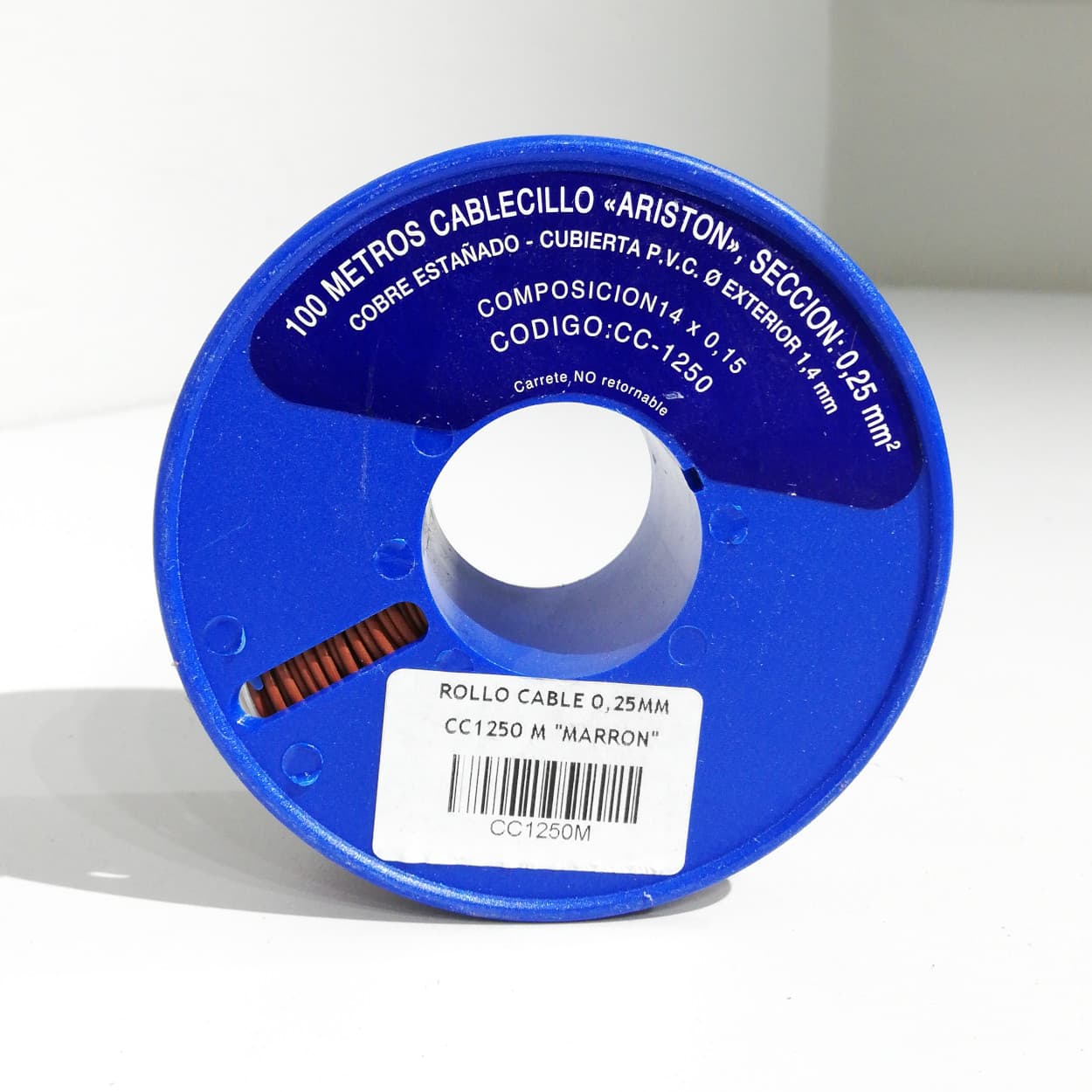 Bobina de cable de 0,25mm2 con diámetro exterior de 1,4mm y aislamiento de PVC.