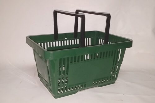 Cistella de plàstic de segona mà procedent d’una botiga en tancament.