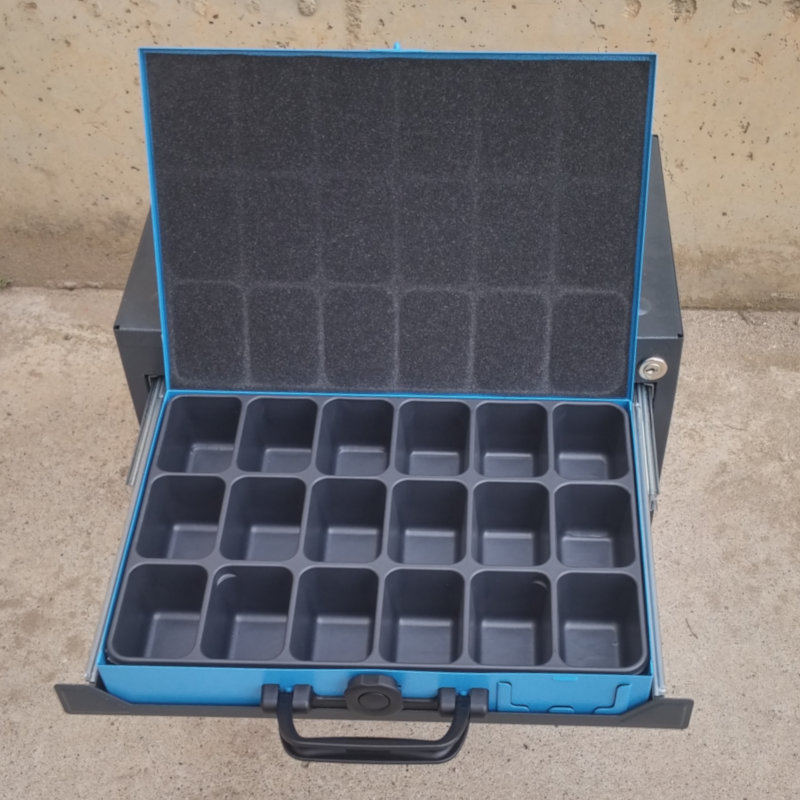 4 calaixos amb compartiments per a cargols i eines petites.