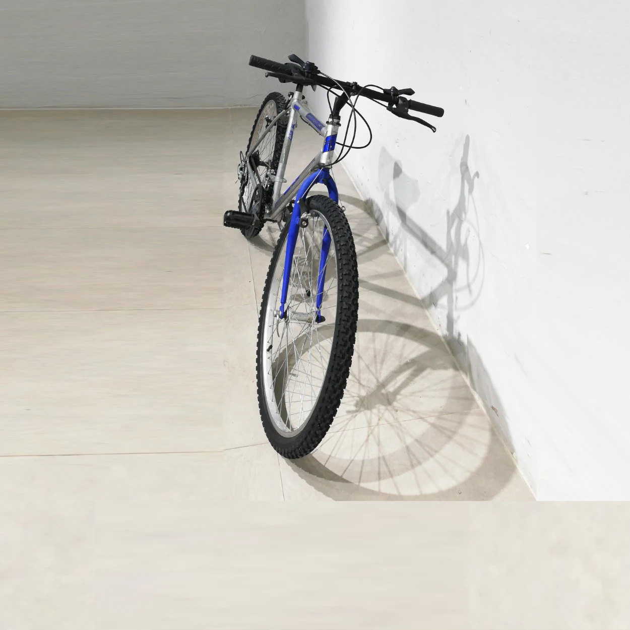 Bicicleta de color gris/blau amb roda de ø65cm.
