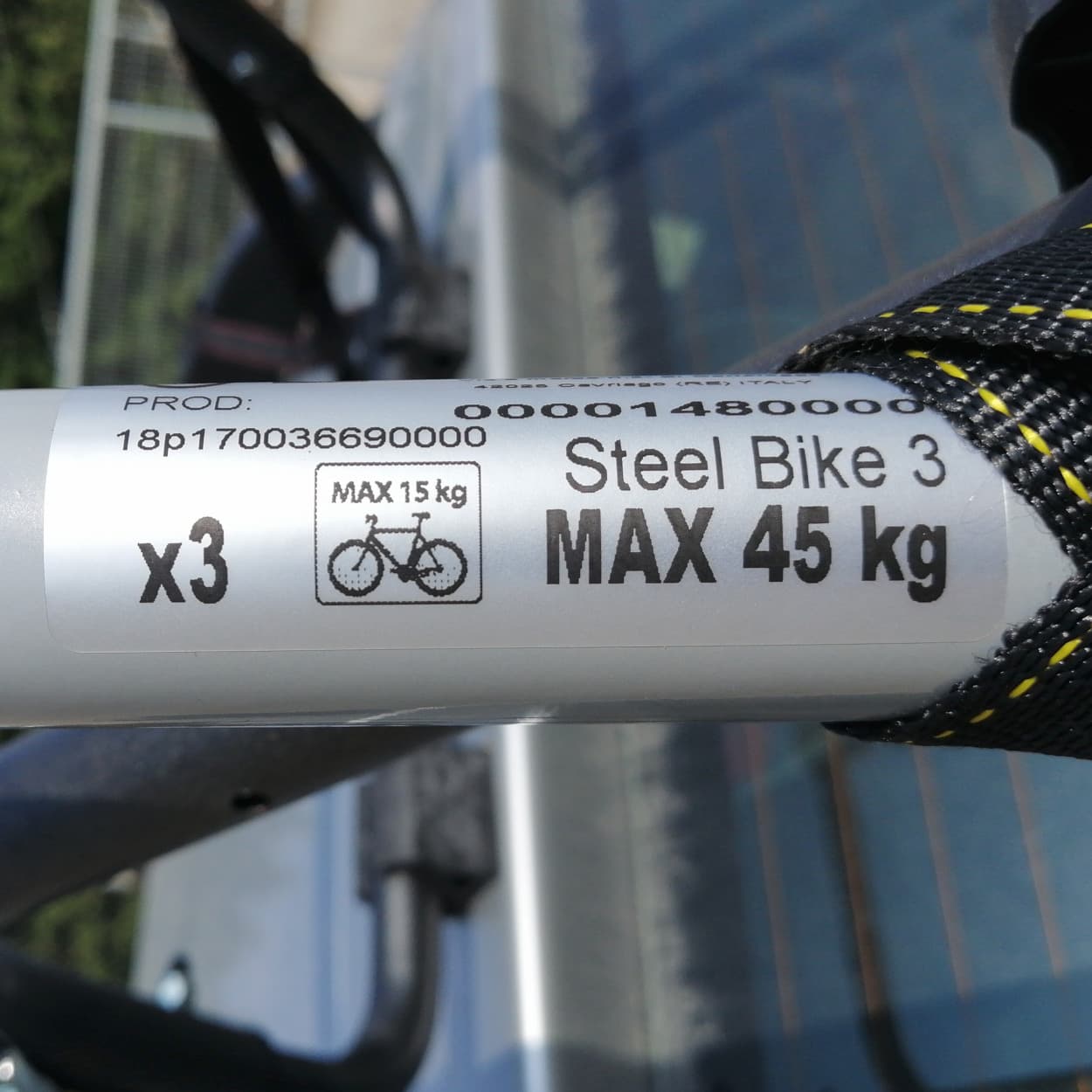 Porta-bicicletes per a 3 bicicletes de 15kg cadascuna.