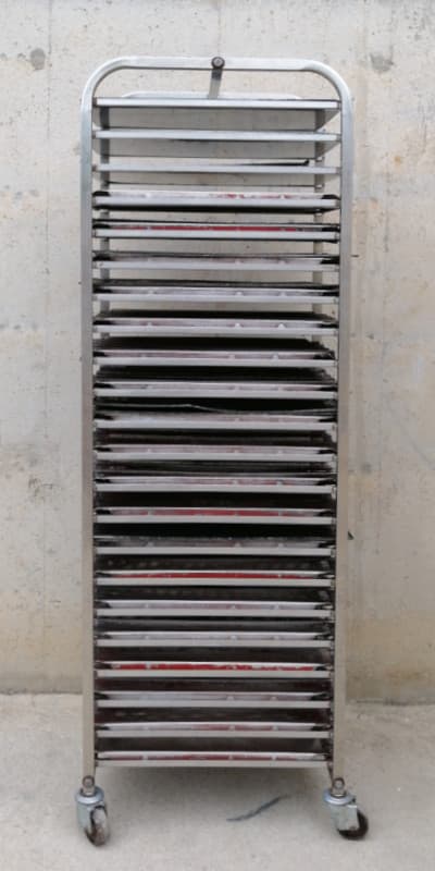 Carro d’acer inoxidable amb espai per a 22 safates.