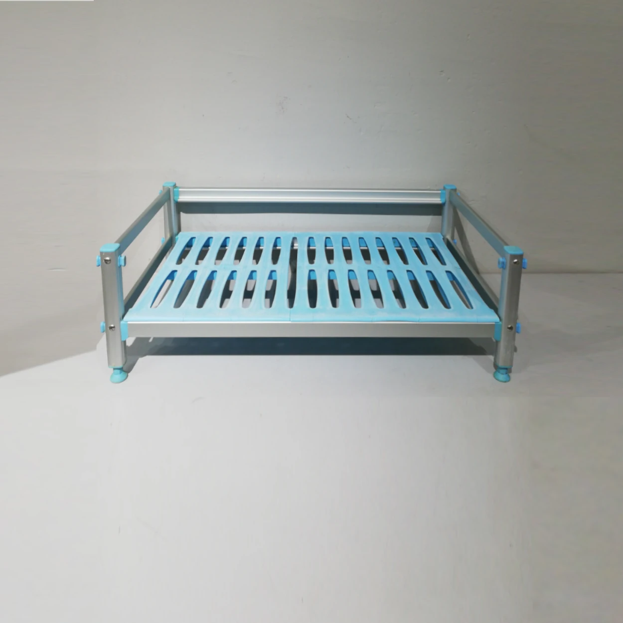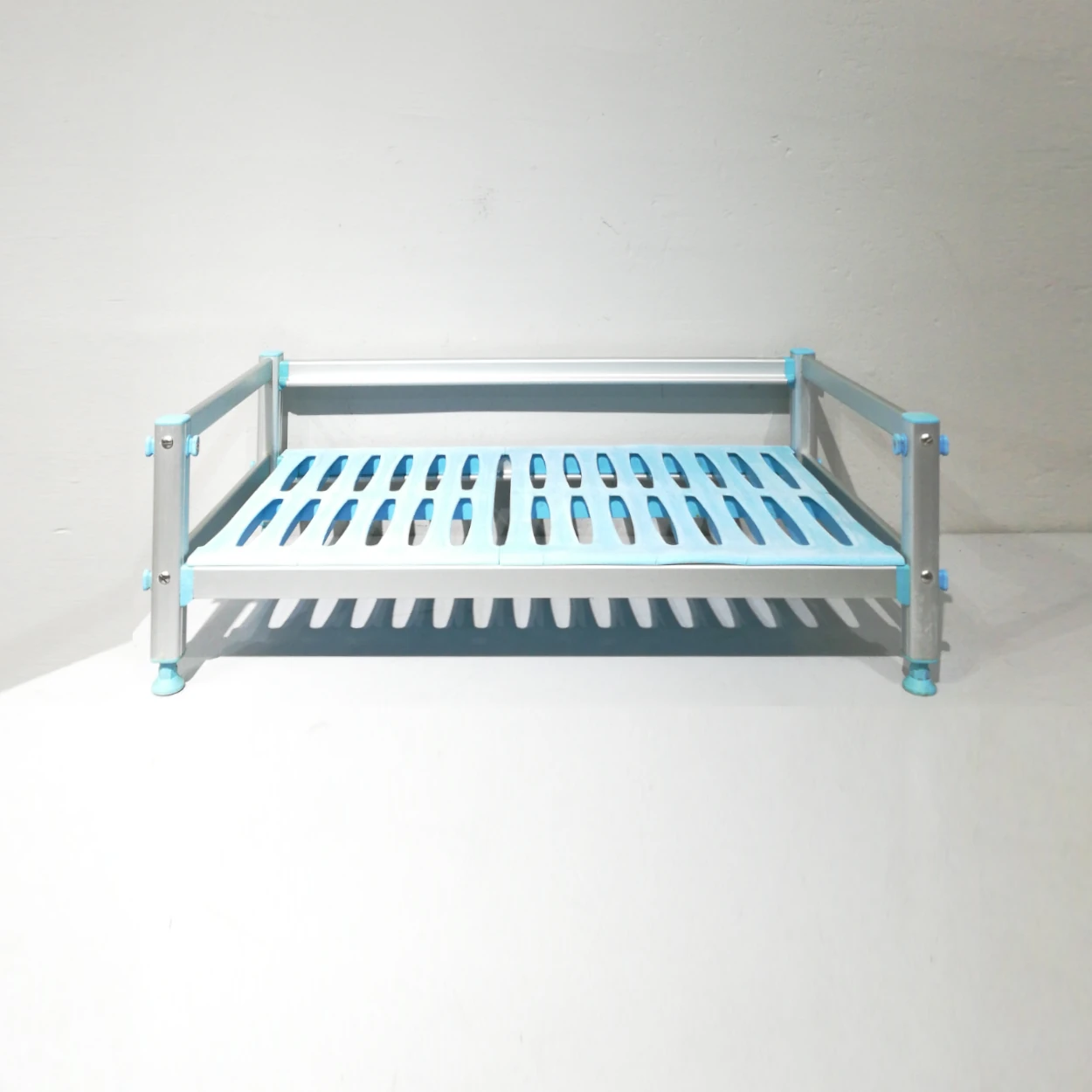 Prestatge d’ocasió fet amb barres d’alumini i bases de plàstic apta per a cambres frigorífiques, ús alimentari…