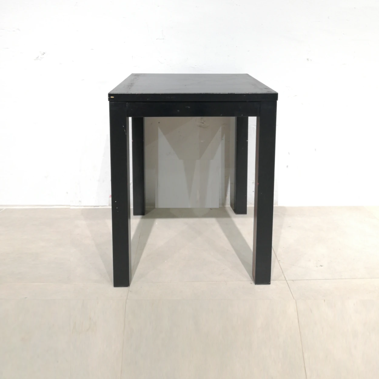 Taula feta de fusta de gran resistència, amb desgast per l’ús perfecta tant per a ús domèstic com professional pintada de color negre.
