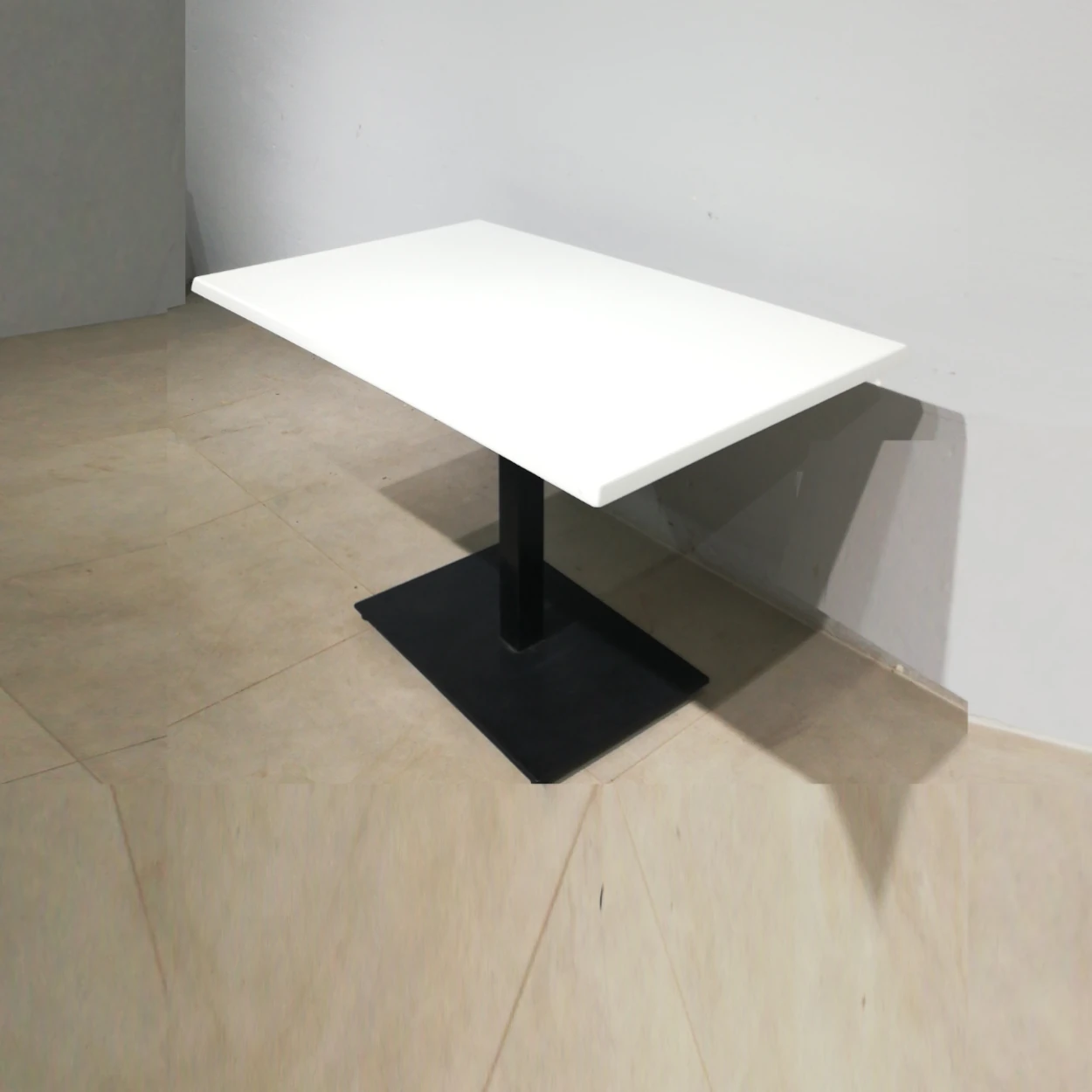 Taula d’ocasió amb peu d’acer i base de gran resistència, procedent d’una empresa en tancament.