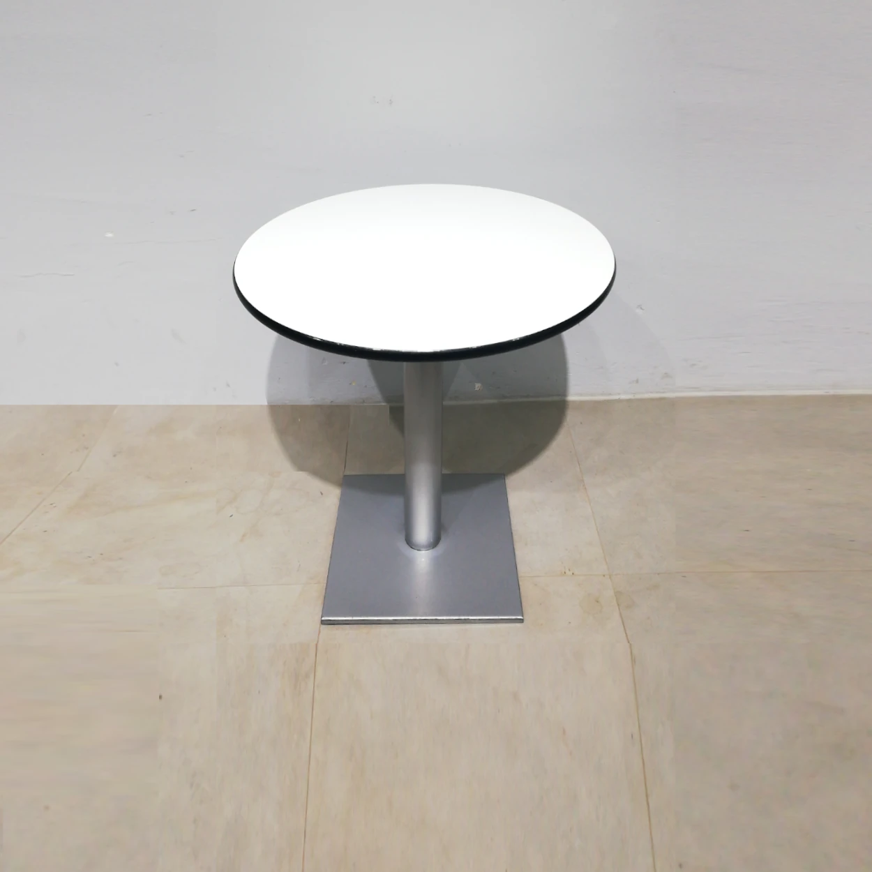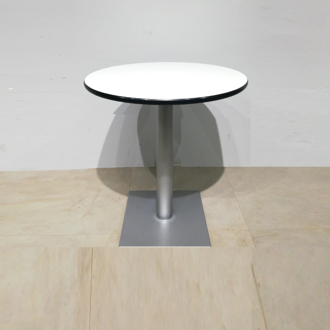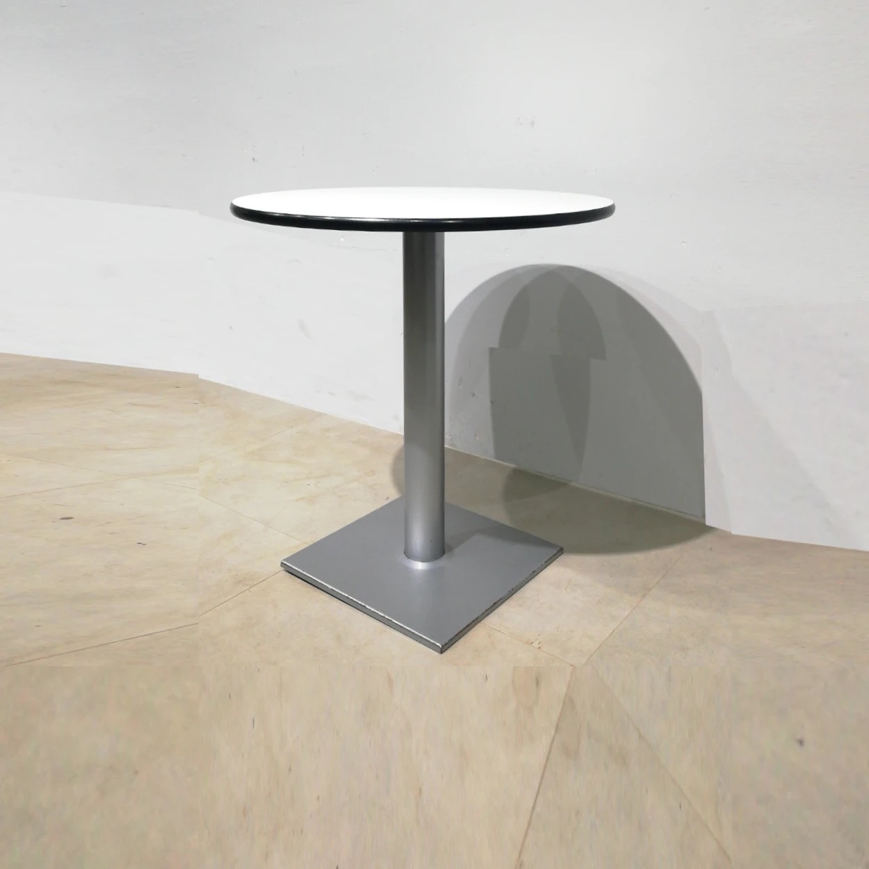 Taula amb peu central de tub d’acer i base de melamina de gran qualitat i resistència, perfecta per a bar, restaurant, hotel…