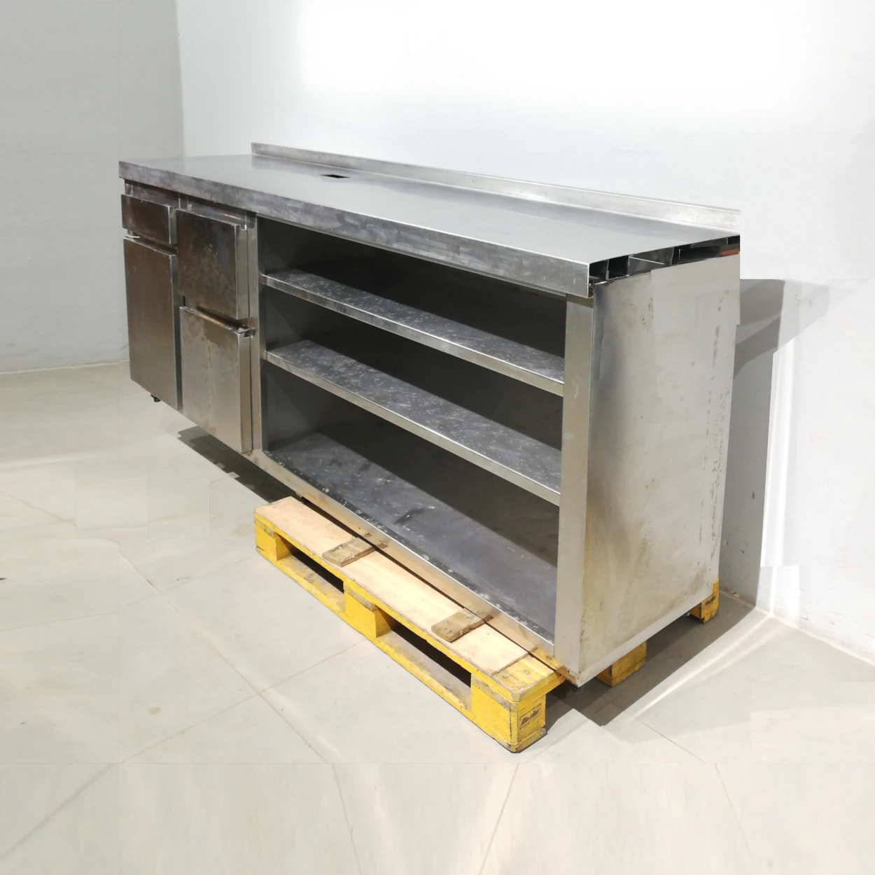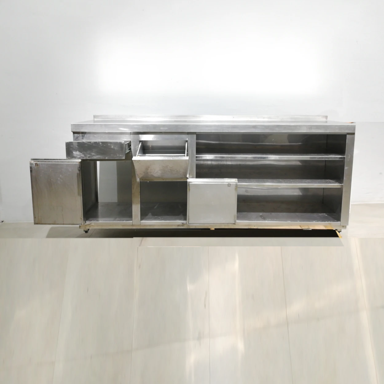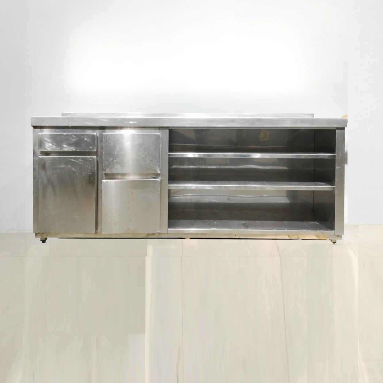 Moble per a cafetera d’ocasió fet de xapa d’acer inoxidable de gran qualitat i resistència amb molt espai d’emmagatzematge.