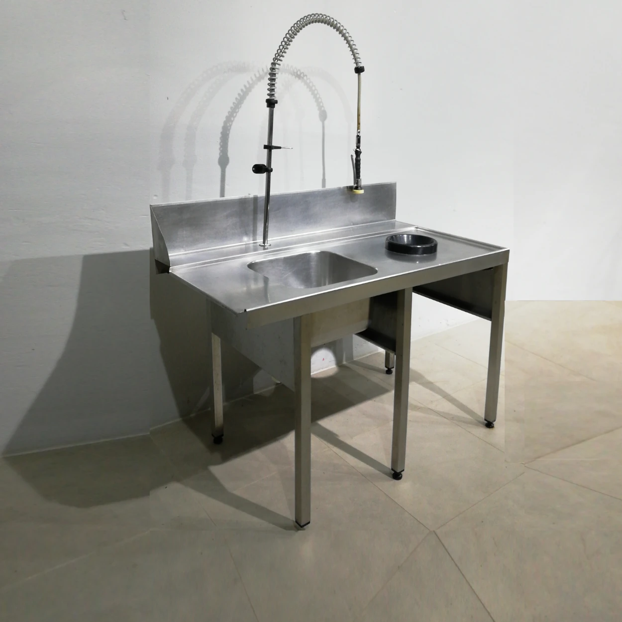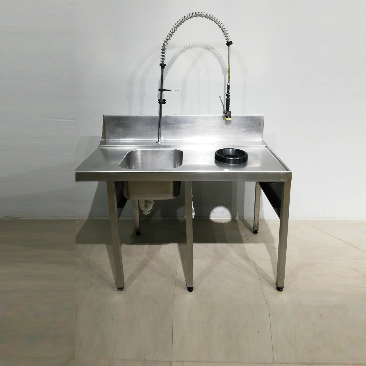 Pica d’ocasió amb potes, aixeta de dutxa i forat per a la brossa perfecta per a ús professional en restaurant, hotel, cuina comunitària, càtering…