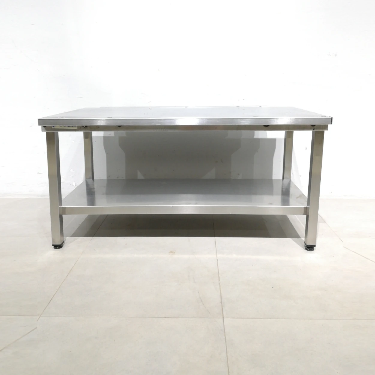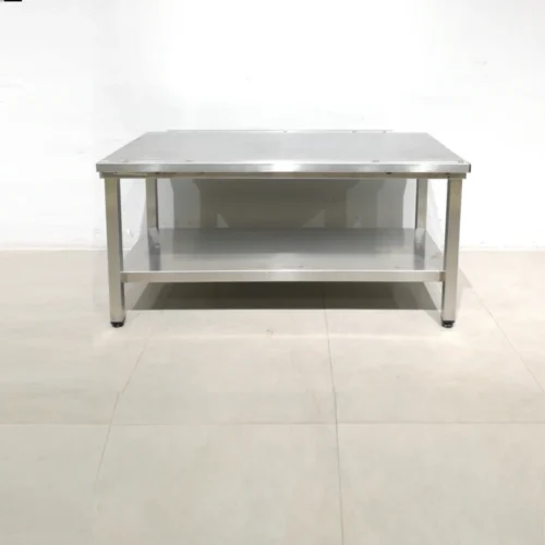 Taula baixa d’acer inoxidable d’ocasiรณ, procedent d’una empresa en tancament perfecta per a botiga, taller, bar…