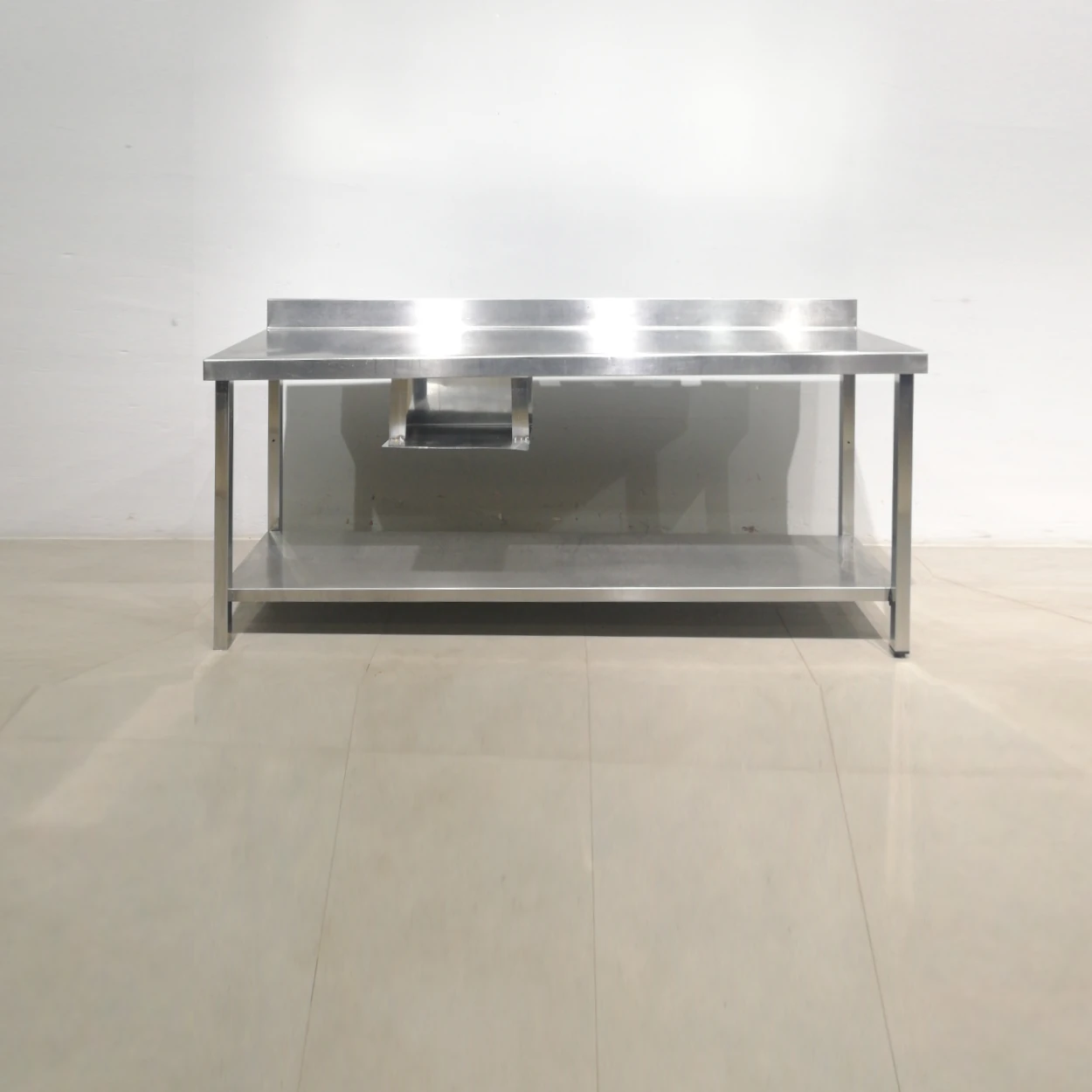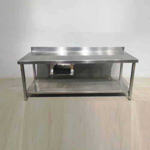 Taula d’inox en bon estat perfecta per a ús professional en càtering, indústria alimentària, fàbrica, taller…