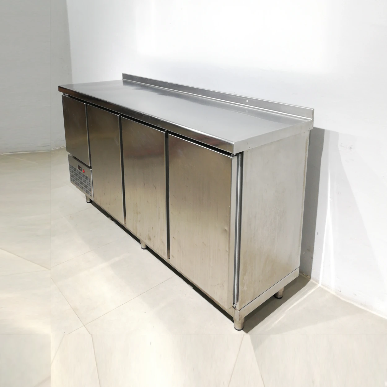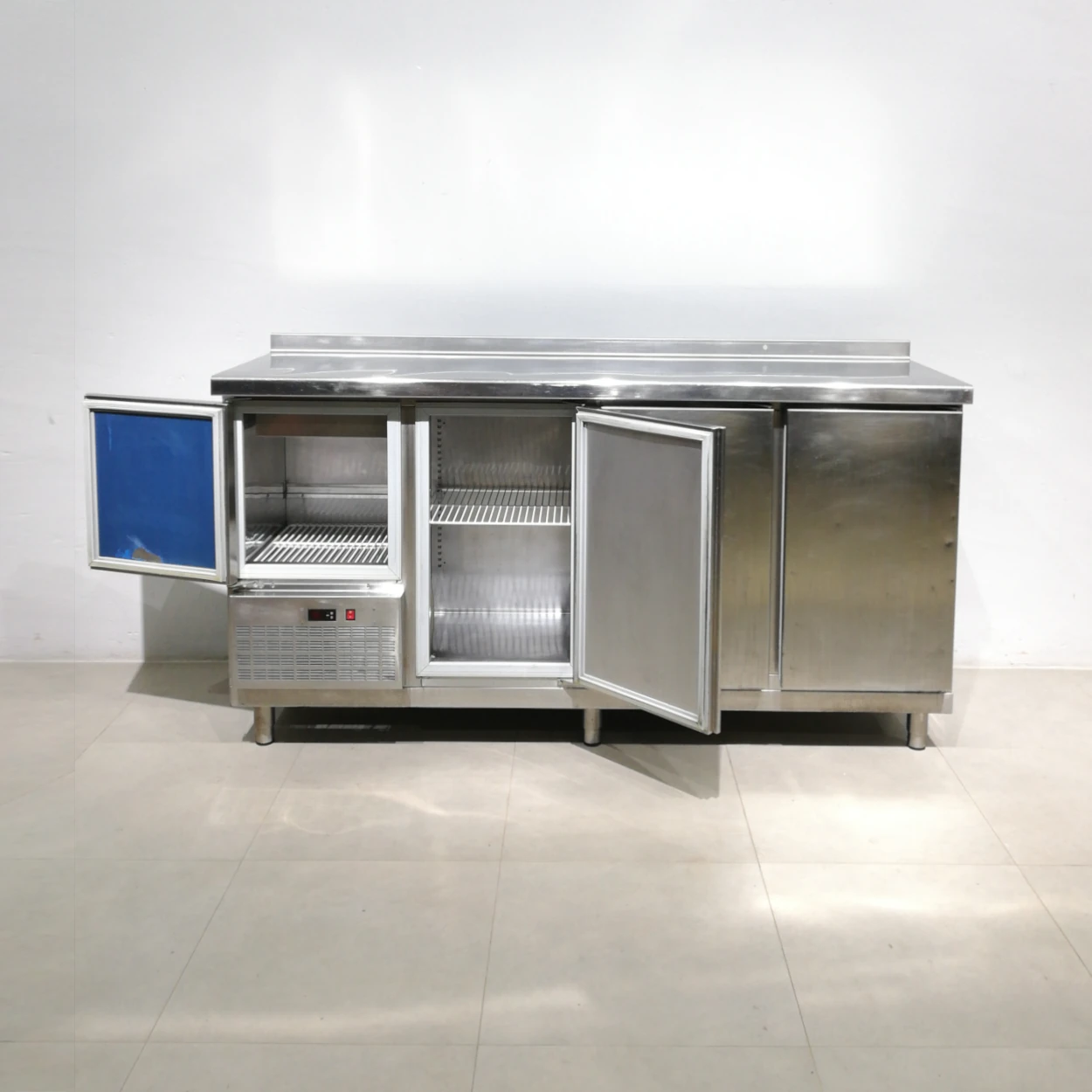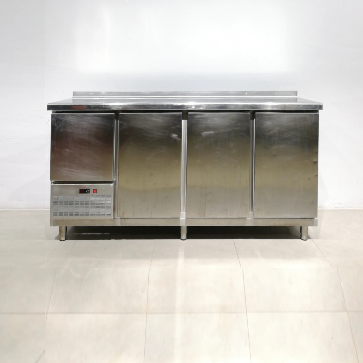 Taula freda d’acer inoxidable en bon estat, perfecta per a bar, restaurant, hotel…