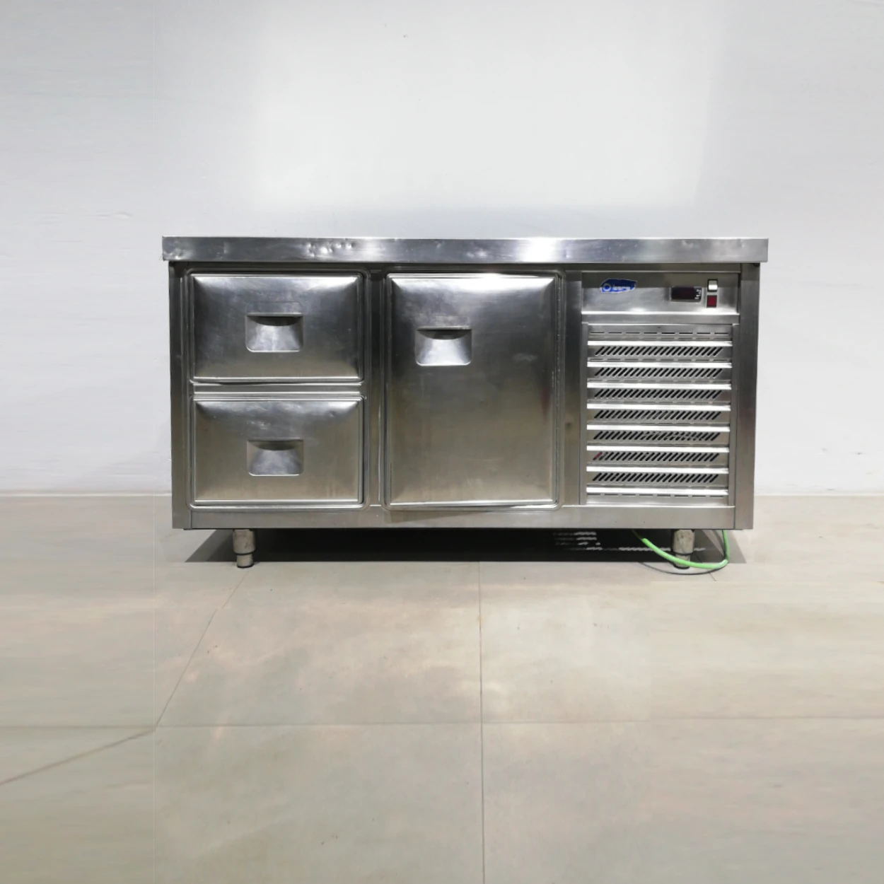 Taula freda d’acer inoxidable en bon estat perfecta per a bar, restaurant, hotel…