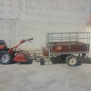 Motocultor PASQUALI, modelo: MT, motor LOMBARDINI LDA 96 de 638 cm3 y 14 CV de potencia, con fresa (rotovator) de 80cm de anchura de trabajo y remolque de dimensiones 2m x 1,2m. con alzas . Marchas cortas y largas tanto delante como detrás. Arranque manual. Diferencial autoblocante para girar con facilidad y con frenos independientes. Ideal para huerto y pequeñas fincas o explotaciones de conreo.