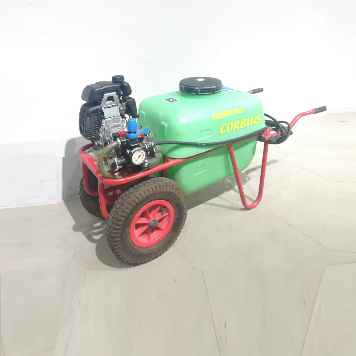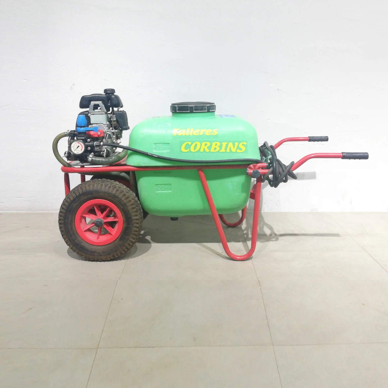 Sulfatadora de carretó amb capacitat de 100 litres.