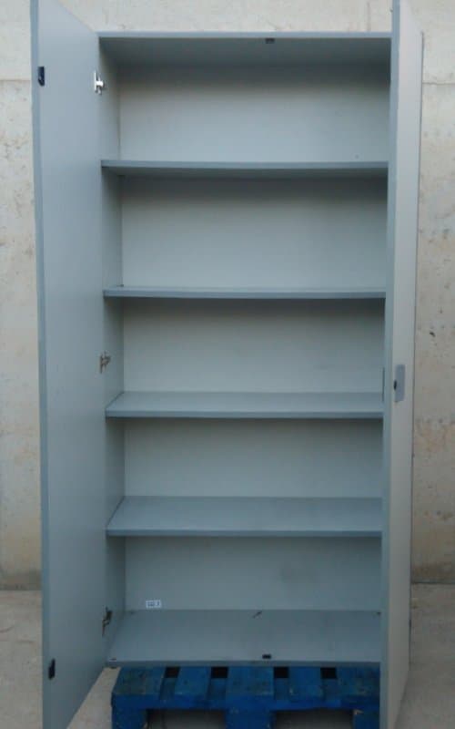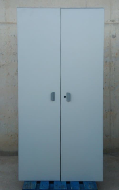 Armari d’oficina de color gris fet en planxa de melamina de gran resistรจncia perfecte per a oficina, despatx, taller…