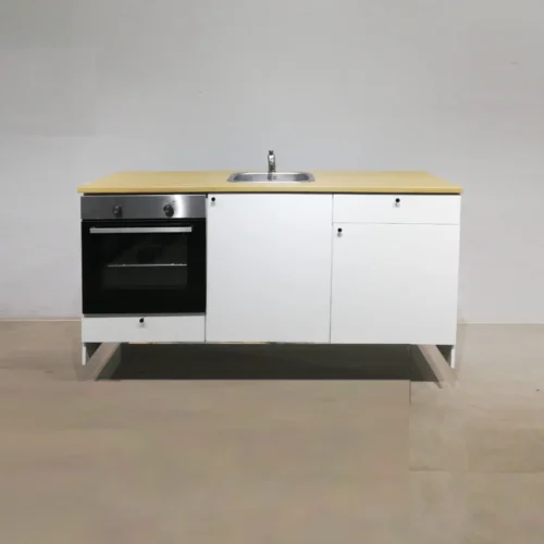Moble de cuina amb molt espai d’emmagatzematge d’ocasió procedent d’una empresa en tancament amb pica i forn.