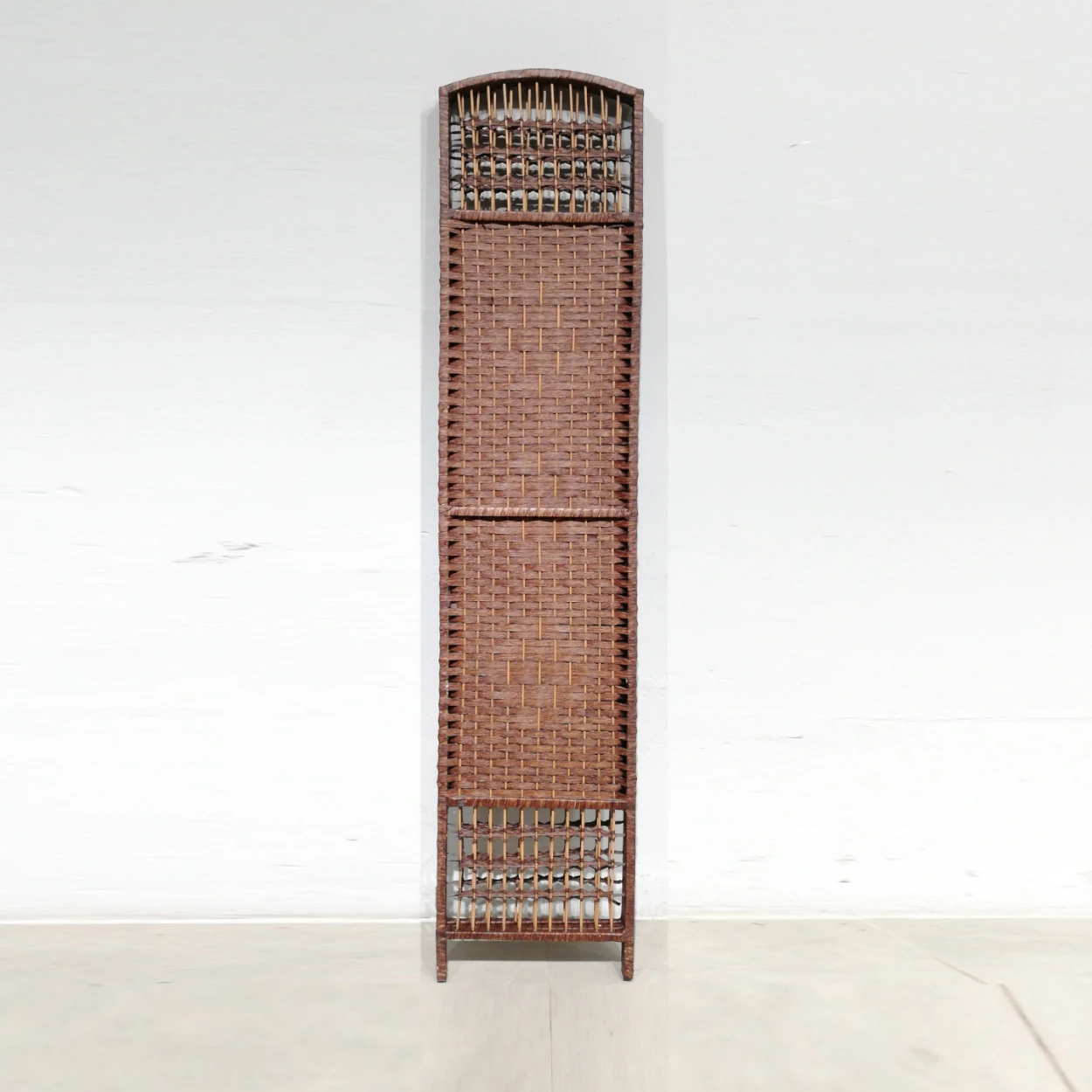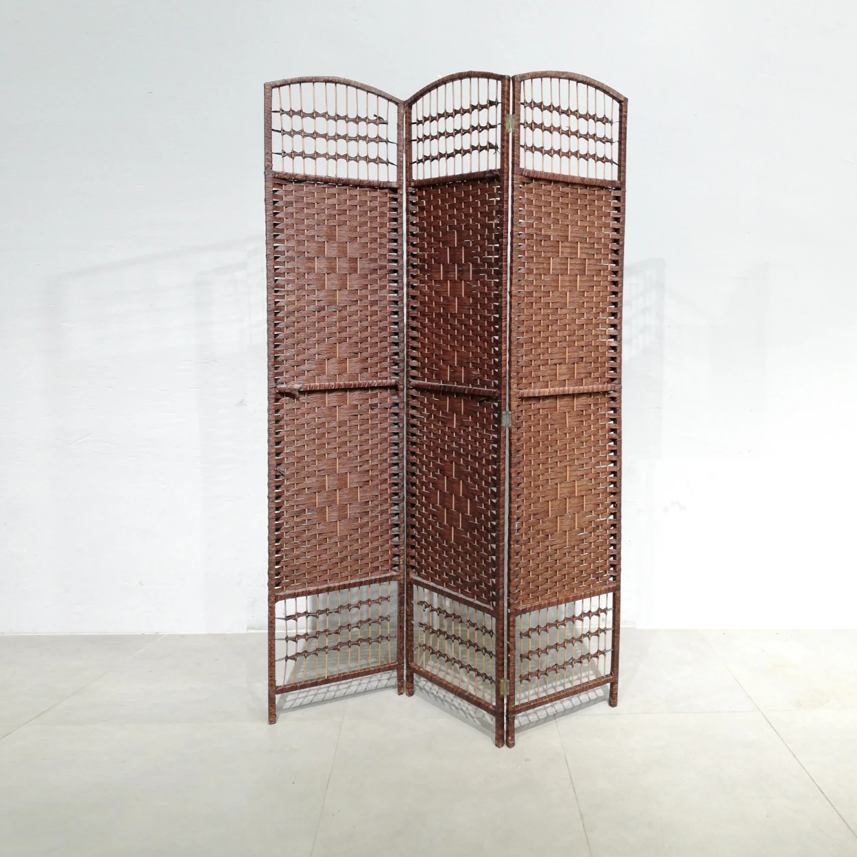 Para-vent d’ocasió de 3 plafons fet de ràfia, en venda per desús.