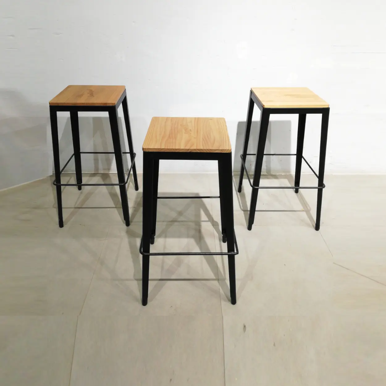 Tamboret metàl·lic amb base de fusta perfecte tant per a ús domèstic com per a bar, restaurant, hotel…
