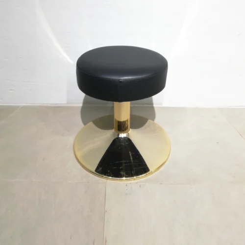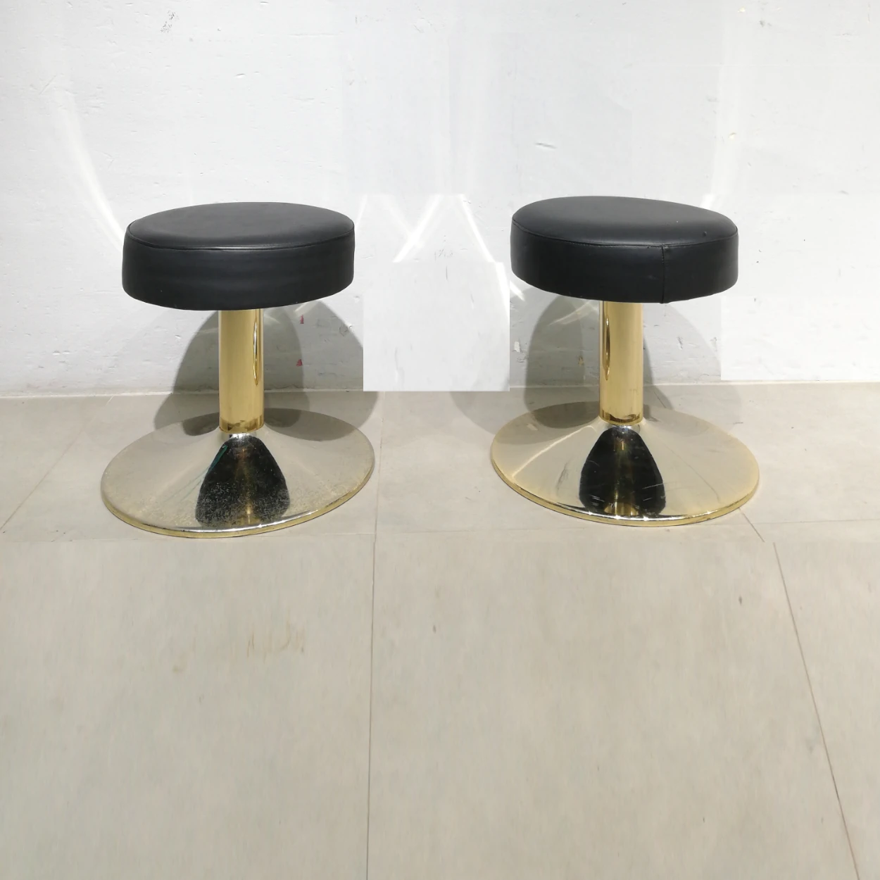 Tamborets de pell negra i peu de llautó d’ocasió procedents d’una empresa en tancament.