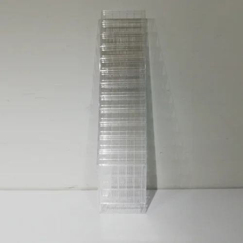 Dispensador de paret fet de plร stic transparent amb 12 compartiments per a fullets, publicitat, documents…